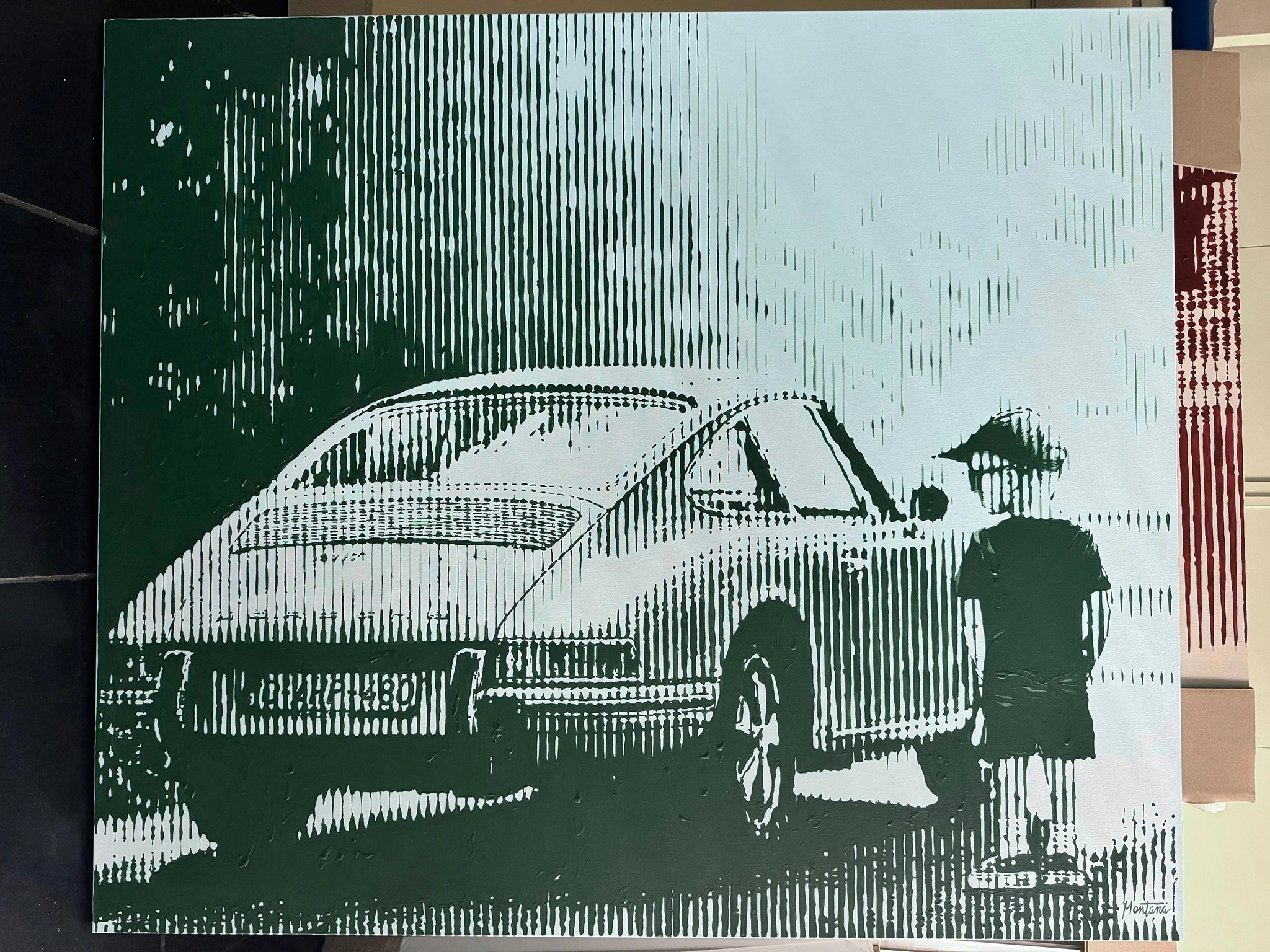 Deze levensvisie weerspiegelt zich duidelijk in haar werk. Montana confronteert haar eigen perfectionisme: ze gebruikt nooit een liniaal of hulpmiddelen om lijnen recht te trekken. Ze omarmt bewust dat niet elke lijn exact recht zal zijn. Dit geeft haar werk een uniek karakter en benadrukt dat het volledig met de hand geschilderd is. Wie dichterbij komt, ontdekt bovendien talloze subtiele kleurvariaties tussen de lijnen.