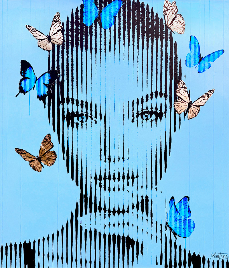 Montana Engels is een jonge kunstenares die een geheel eigen schildertechniek ontwikkelde. Door uitsluitend handgeschilderde lijnen te gebruiken, weet ze portretten te creëren die van dichtbij abstract ogen, maar zodra je afstand neemt, veranderen in verrassend gedetailleerde en realistische portretten.Haar creatieve talent werd al vroeg zichtbaar, maar haar doorbraak volgde na deelname aan Belgium’s Got Talent. Daar werd ze ontdekt en groeide haar bekendheid. Kort daarna werd ze uitgenodigd door de familie Hazard om live te schilderen, wat haar carrière in een stroomversnelling bracht. Inmiddels heeft Montana gewerkt voor bekende artiesten, de prins van België, en trad ze op bij evenementen als Tomorrowland. Ook maakte ze internationale samenwerkingen met merken als MAC Cosmetics, Disney, Aston Martin, Playstation, Porsche, MINI, The National Lottery, Sherathon, Qmusic, Monster, Jägermeister, Lolaliza, Bombay Sapphire, Gaston Luga, Tao, Bowmore, Binck Bank, Deme, Suspicious Antwerp, Antwerp Diamond Museum en vele anderen.Wat haar kunst uniek maakt, is de zelf ontwikkelde “striped” stijl: werken opgebouwd uit lijnen die samen een portret vormen. Van dichtbij lijken ze abstract, maar van verder weg ontstaat een indrukwekkend realisme.
