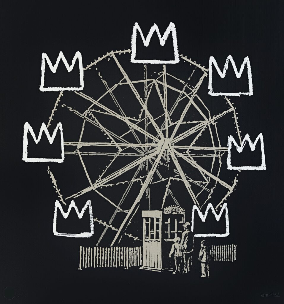 Banksy – Napalm (Stamped) Banksy brengt met Napalm (Stamped) een confronterend en indringend beeld dat direct raakt. Het kunstwerk toont een naakt Vietnamees meisje, gebaseerd op de iconische oorlogsfoto van Kim Phúc, die angstig en kwetsbaar wordt afgebeeld. Aan weerszijden lopen Mickey Mouse en Ronald McDonald, vrolijk glimlachend en met opgeheven handen. De contrasten zijn schokkend en doelbewust. Het kind symboliseert lijden en oorlog, terwijl de commerciële figuren staan voor consumptie, entertainment en oppervlakkigheid. Door deze combinatie creëert Banksy een krachtig commentaar op de manier waarop westerse cultuur vaak de harde realiteit overschaduwt. De gekozen kleuren zijn eenvoudig maar doeltreffend. Het grijs van de achtergrond benadrukt de ernst, terwijl de felle details van Mickey en Ronald voor een wrange vrolijkheid zorgen. Daardoor wordt de toeschouwer gedwongen stil te staan bij hypocrisie en westerse invloed in conflicten. Napalm (Stamped) is niet alleen visueel sterk, maar ook inhoudelijk een aanklacht. Banksy daagt hiermee het publiek uit om kritisch te kijken naar oorlog, macht en de rol van multinationals. Het werk balanceert tussen satire en tragedie, waardoor de boodschap des te krachtiger wordt. Dit kunstwerk is een klassiek voorbeeld van Banksy’s vermogen om harde thema’s in een ogenschijnlijk simpele compositie te vatten. Elke lijn, elk detail draagt bij aan het ongemakkelijke gevoel dat Banksy bewust oproept. Het werk benadrukt hoe absurd de combinatie van kinderlijke vrolijkheid en oorlogsleed kan zijn.