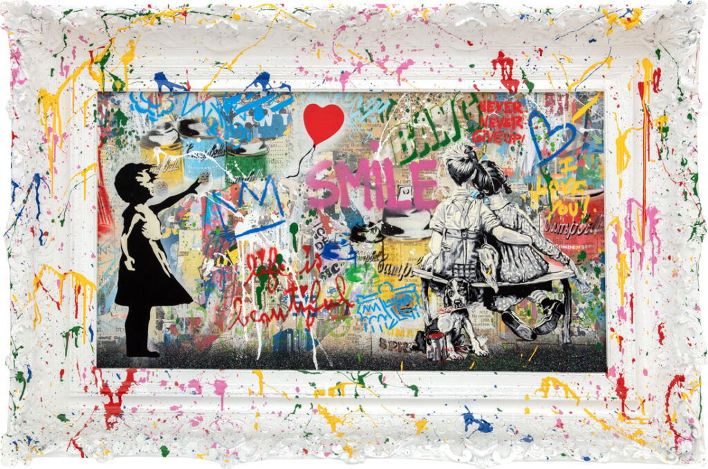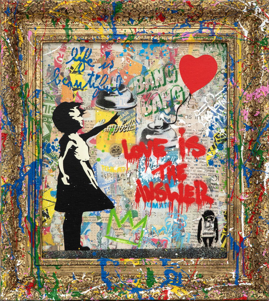 Mr. Brainwash - Tomaat Pop Mr. Brainwash - Tomaat Pop is een energiek kunstwerk dat direct een glimlach oproept. Het werk toont een soepblik, herkenbaar uit de popartgeschiedenis, maar dit keer gevuld met verfkwasten. Daarmee laat Mr. Brainwash zien dat kunst niet stopt bij consumptie, maar juist begint bij creativiteit. De titel Mr. Brainwash - Tomaat Pop verwijst zowel naar de knipoog naar Andy Warhol als naar de hedendaagse street art waar Thierry Guetta zo beroemd mee werd. De achtergrond is fel en levendig, vol graffiti, spatten en teksten. Woorden als Love Your Smile en speelse iconen zorgen voor een dynamisch geheel. Dit geeft het werk een rauwe, stedelijke uitstraling die perfect aansluit bij de energie van de kunstenaar. Het is een explosie van kleur en ideeën die symbool staat voor vrijheid van expressie. Met dit kunstwerk benadrukt Mr. Brainwash de kracht van popart en street art. Het soepblik staat voor herkenbaarheid en nostalgie, terwijl de kwasten creativiteit en vernieuwing symboliseren. De boodschap is duidelijk: kunst is overal en begint bij de verbeelding. Mr. Brainwash - Tomaat Pop is daarmee niet alleen een visueel statement, maar ook een ode aan kunst als levenskracht. Dit maakt Mr. Brainwash - Tomaat Pop tot een sprankelend symbool van creativiteit, speelsheid en de oneindige kracht van kunst.